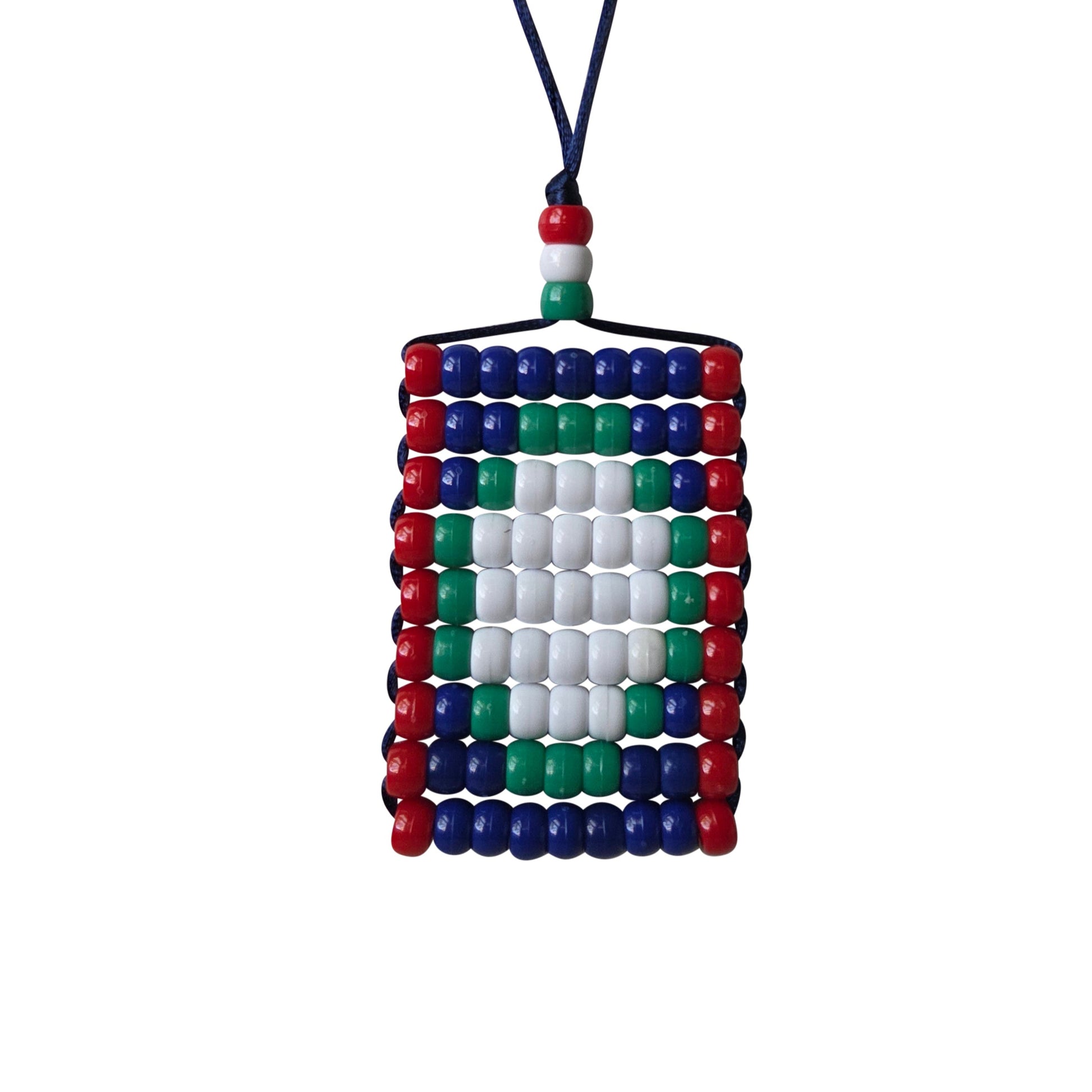 Belize Beaded Flag for car rear view mirror. Vibrant colors with a clean look.